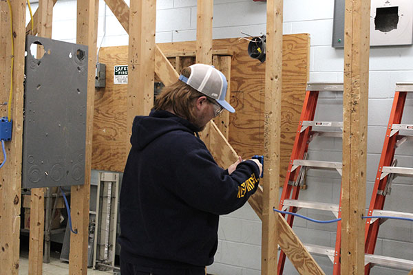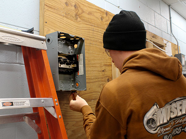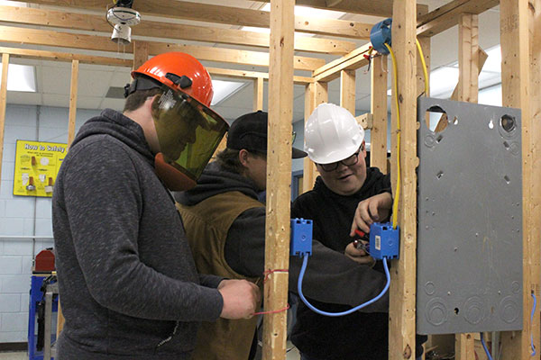 Install and troubleshoot residential and commercial electrical circuits, run wiring, cut and bend conduit, test circuits, install breaker boxes and lighting fixtures. Students learn to install residential and commercial receptacles, lighting circuits, electrical services, and EMT PVC RIGID and MC CONDUIT. They calculate current, resistance, voltage, and impedance using Ohmโ€™s law. Completers are eligible to test for their WV Electrical Journeymanโ€™s license.