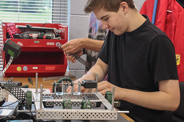 Construct and program robots to perform various tasks. Compete in VEX and SkillsUSA competitions at the statewide level with the opportunity to compete in National and World level competitions. Prototype using a 3D printer and Autodesk software. Write and test programs in real and virtual simulations. Students practice robot design and fabrication, prototyping and 3D printing, mobile robotics programming, electronic systems, sensors and motor control, basic applied physics